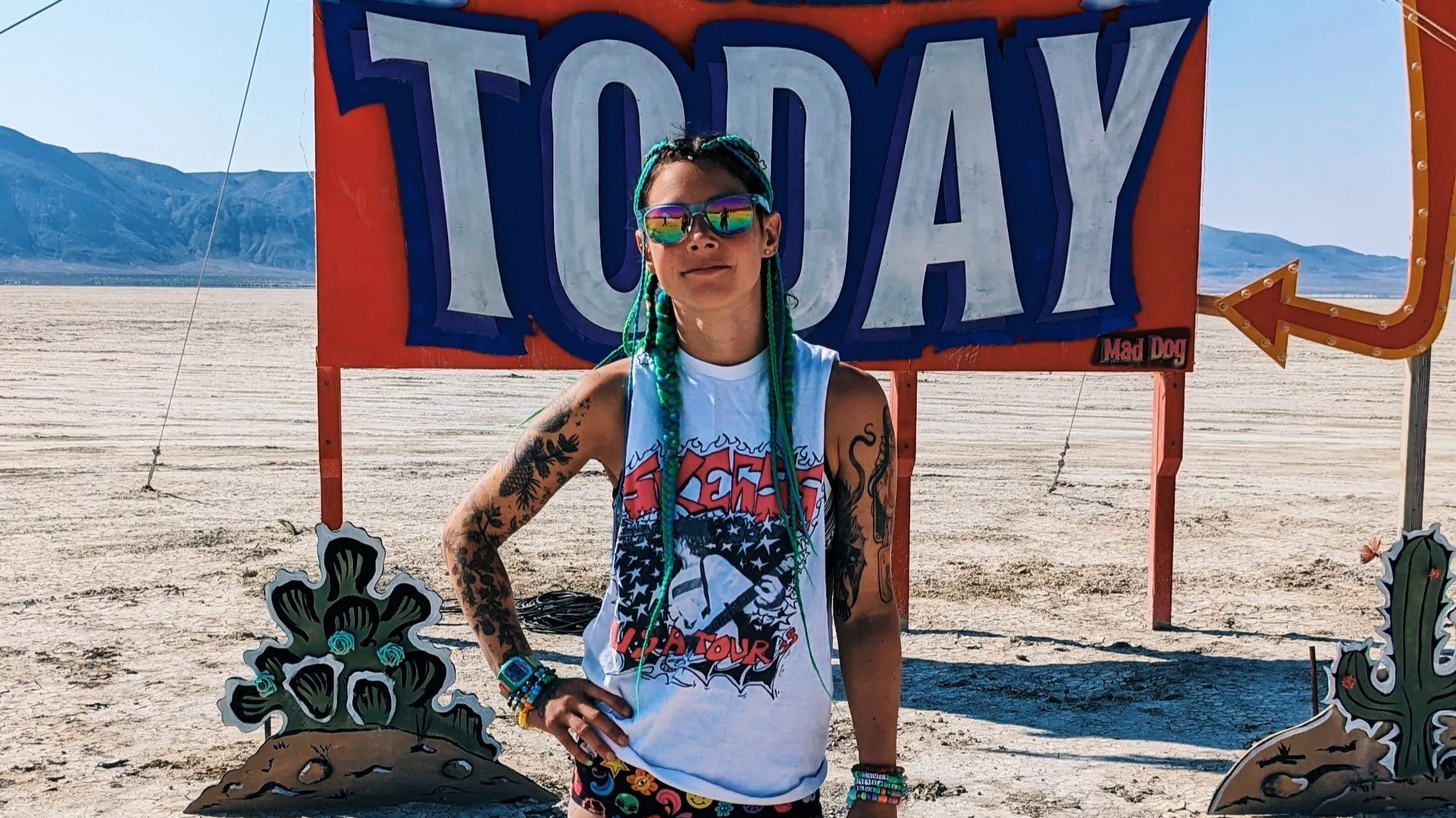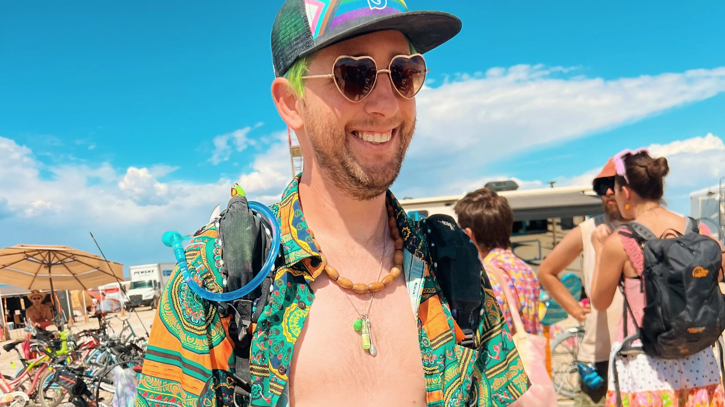 "This isn't necessarily the most 'fun' memory, but my and Lizadilla's first year as leads was the 'mudpocalypse' of 2023. Suffice to say it was something of a trial by fire...or would that be by water? Either way, we weren't starting on easy mode. Luckily, BuddhaCamp is an amazing group and we came together and made the most of it. We successfully got camp torn down and left with minimal drama, to the point where we can all laugh about it now. Plus, seeing the rainbows on playa was pretty great."